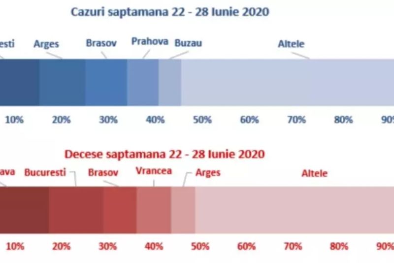 În ultima săptămână, cele mai multe cazuri de infectare și decese, jumătate din cele raportate la nivel național, au fost în Suceava, București, Argeș, Brașov, Prahova și Buzău.