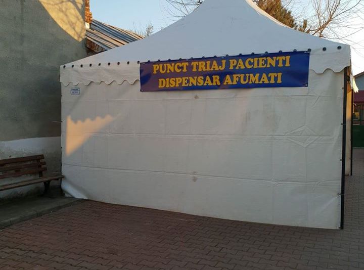 În curtea dispensarului din Afumați a fost montat un cort care are toate dotările necesare pentru triajul pacienților, astfel încât un potențial purtător al virusului să nu ia contact cu ceilalți pacienți.