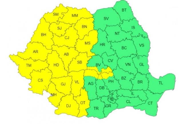 Cod galben de vijelii, de luni seară, în jumătate din țară