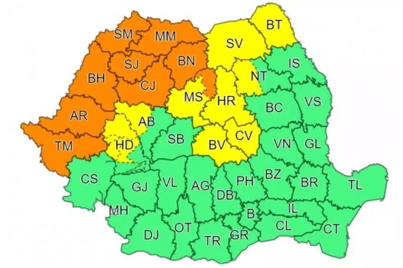 Zone afectate: județele Satu Mare, Maramureș, Sălaj, Cluj, Bistrița Năsăud, zona de munte a județului Mureș
