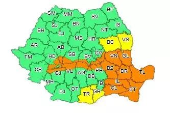 În județele Buzău, Brăila, Ialomița, Călărași și Tulcea vor fi intensificări puternice ale vântului cu rafale de peste 85...90 km/h, temporar va fi viscol și vizibilitatea redusă semnificativ