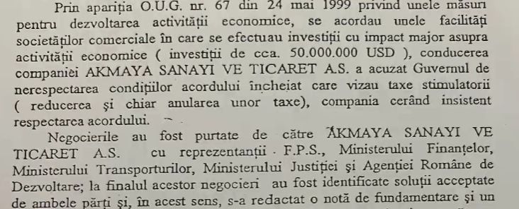 „Turcii au plecat in mai 1999, pe vremea guvernului lui Radu Vasile. In 31 oct. 2000, FPS vinde iar Rompetrol Group (...), pretul total a fost de 50 de milioane.