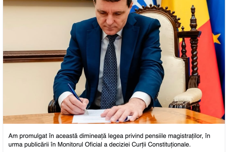 Președintele României, Nicușor Dan, a anunțat că a promulgat, în această dimineață, legea privind pensiile magistraților, după publicarea în Monitorul Oficial a deciziei Curtea Constituțională a României.