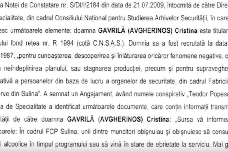 Direcția de Achiziții și Patrimoniu din cadrul APIA Central este condusă de către Cristina Gavrila Avgherinos, fosta turnătoare a Securității Statului, declarată de CNSAS, pe vremea când lucra la fabrica de conserve din Sulina.