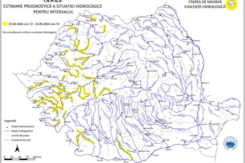 ”Având în vedere situaţia hidrometeorologică actuală şi prognoza meteorologică pentru următoarele 24 de ore, specialiştii I.N.H.G.A. au actualizat Codul galben care este valabil începând de astăzi, de la ora 12:00, până vineri, la ora 10:00”, anunţă, IHNGA.
