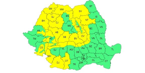 Meteorologii au emis, duminică, o atenționare Cod galben valabilă în intervalul 4 februarie, ora 14:00 – 05 februarie, ora 08:00. Fenomenele vizate: intensificări ale vântului, ninsori moderate cantitativ și viscol în zona montană înaltă (la altitudini de peste 1500 m).